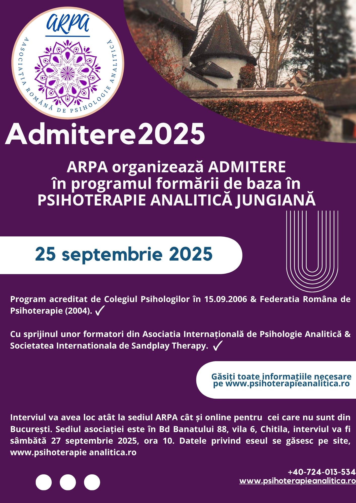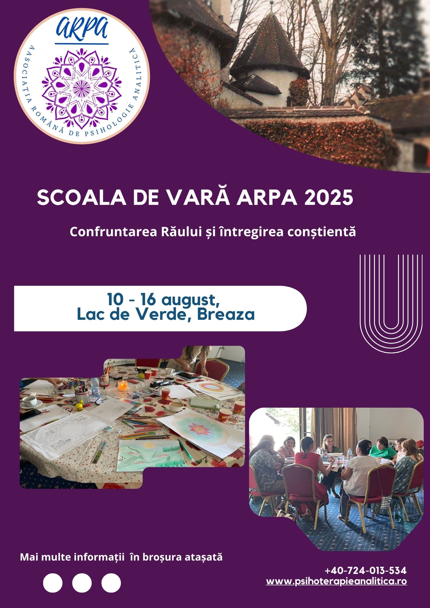 Este deja o îndelungată tradiție ca ARPA să organizeze anual, în luna august, o Școală de vară, care să realizeze pentru participanți o aprofundare a unor aspecte teoretice și practice ale profesiei de psihoterapeut Jungian și de asemenea, să favorizeze colaborarea profesionala și suportul interpersonal pentru membri. În acest an Școala de vară s-a desfășurat în perioada 10 16 august la resortul Lac de Verde, Breaza, jud. Prahova